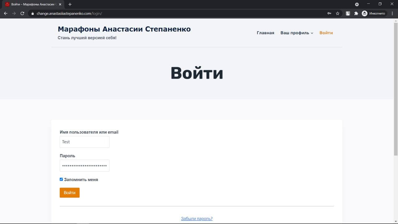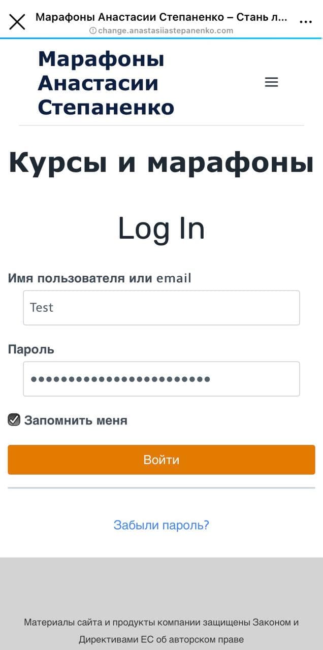 Если вы ещё не задали свой пароль, посмотрите, как это сделать, в разделе «Что делать после оплаты марафона/курса«.